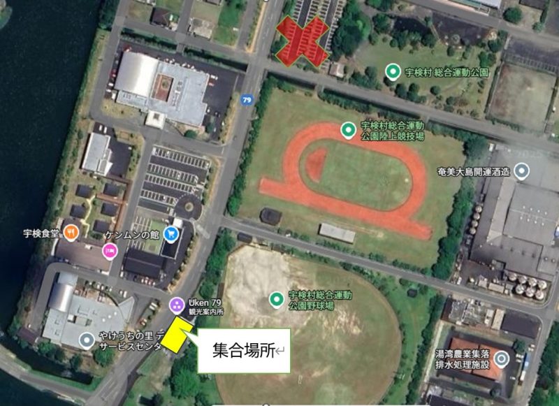 ・集合場所:宇検村 湯湾の宇検総合運動公園のグラウンド前(体育館前の駐車場ではありません)